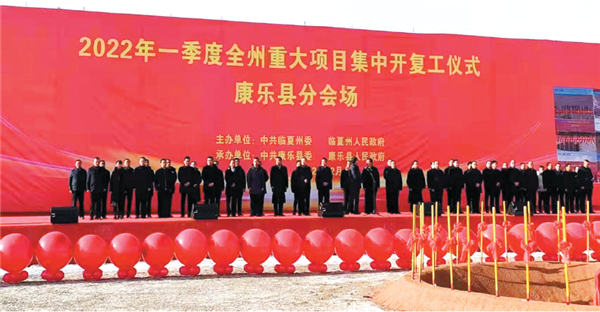 瑞雪兆丰年,奋斗正当时。2月19日,2022年一季度全省重大项目集中开工动员大会临夏州分会场暨一季度全州重大项目集中开复工仪式在东乡县达板工业园区举行。康乐县通过视频连线方式在胭脂湖畔分会场同步举办2022年一季度重大项目集中开复工仪式。