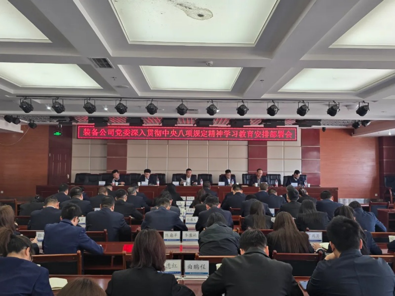 会议传达学习中央办公厅印发的《关于在全党开展深入贯彻中央八项规定精神学习教育的通知》和中央、省委党的建设工作领导小组会议精神以及集团公司党委深入贯彻中央八项规定精神学习教育安排部署会会议精神,传达《装备公司党委关于开展深入贯彻中央八项规定精神学习教育工作方案》。