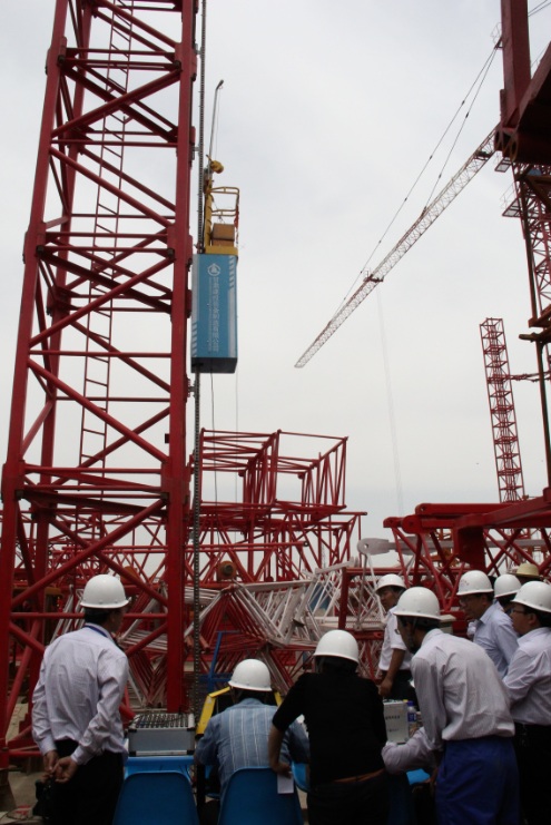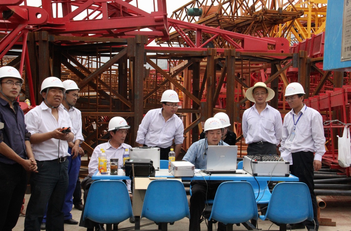 2013年5月23日,甘肃特种设备检验研究所专家一组四人行莅临装备公司,对公司新进研发的ZFC100多功能智能化检修、检测平台进行了型式试验。这次试验过程分为资料审核和现场试验,现场试验主要针对多功能智能化检修、检测平台传动系统、导轨架标准节、电气系统、安全装置、稳定性试验、安装试验、空载试验、载荷试验、结构应力测试等项目进行了试验,经测试各项指标符合标准要求,专家组一致对试验测试结果表示满意。这次试验的成功,验证了多功能智能化检修、检测平台设计的合理性及其该产品在标准规定的条件下运行的适应性,从而保证了多功能智能化检修、检测平台的产品质量和安全性达到标准。