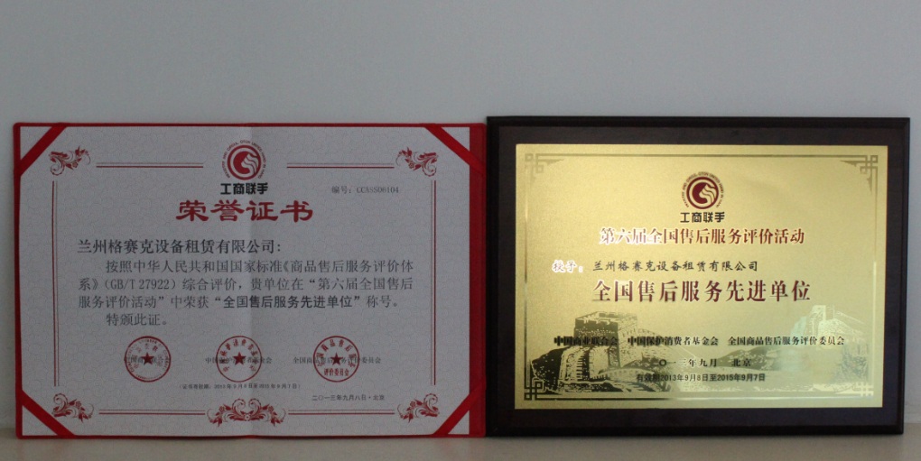 ——格赛克公司荣获“全国售后服务先进单位”荣誉称号