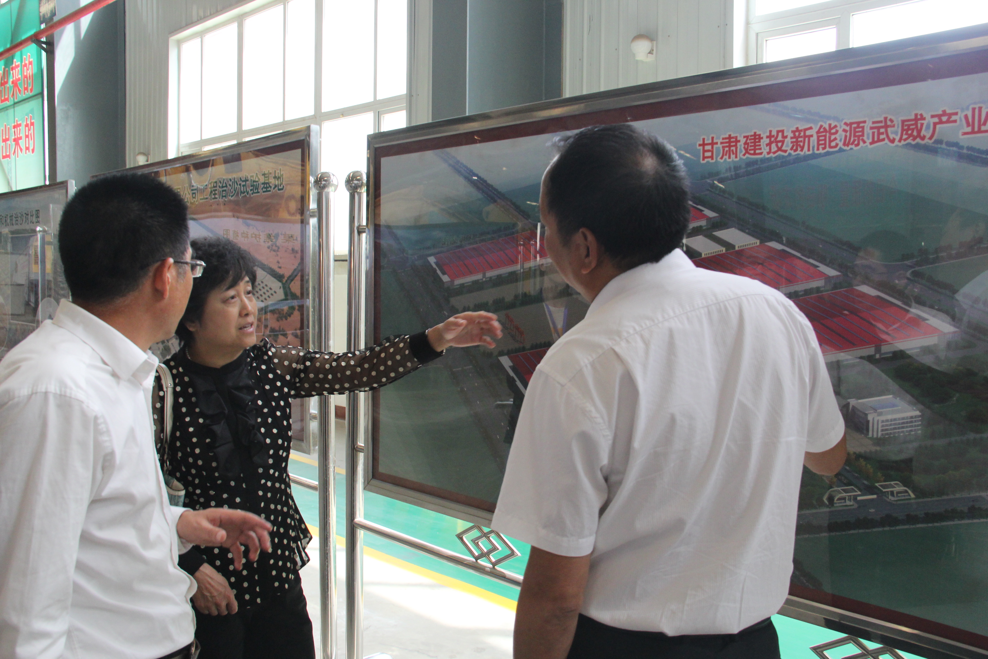 5月26日,甘肃省农机局副局长曹新惠一行在甘肃建投新能源科技股份公司董事长陪同下调研立体固沙车研发生产工作。