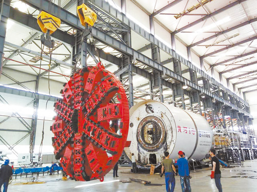 由格赛克(伦敦)国际技术公司组织国内外一流专家进行设计,甘肃建投装备制造公司严格按照ISO国际标准制造、生产、总装、调试的“黄河1号”盾构机6月中旬开始分解、拆机、包装前期准备工作。7月4日-7月14日,技术人员开始对“黄河1号”盾构机进行拆机,从刀盘、前盾、中折盾、尾盾四大部分分解。同时,9个台车已从平台上拆解下来。预计8月份“黄河1号”盾构机将运往合肥市施工。(辛瑞德 摄)